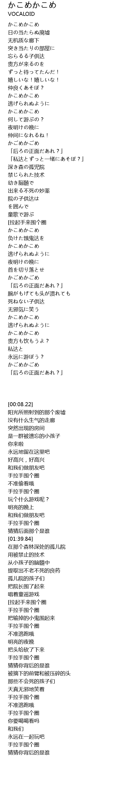 かごめかごめ 歌詞 ボカロ